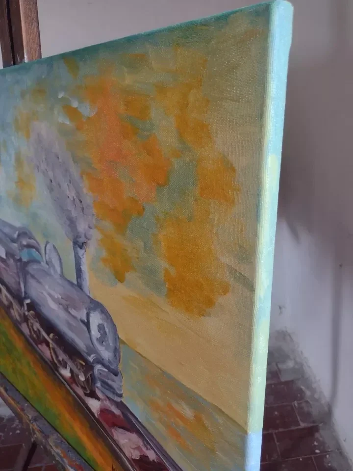 Quadro olio su tela, dipinto a mano. Il treno dell’anima – espressionismo – quadro certificato, autentico