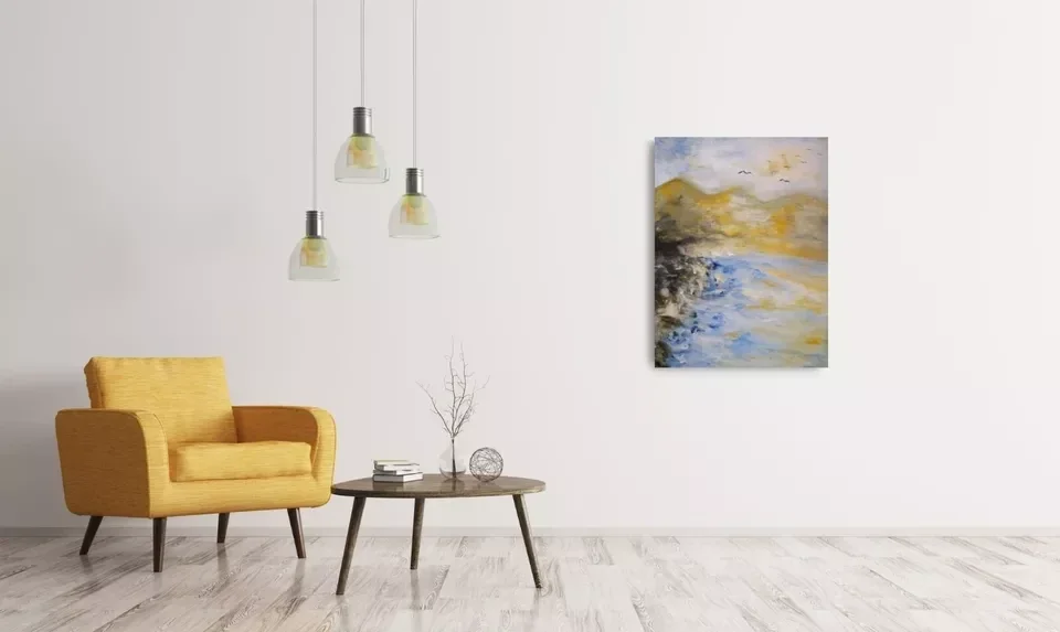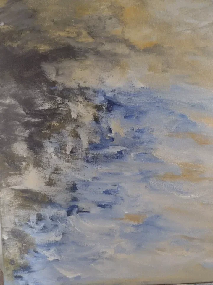 Quadro olio su tela, dipinto a mano. Nebbia in riva al mare alle pendici dei colli – espressionismo – quadro certificato, autentico