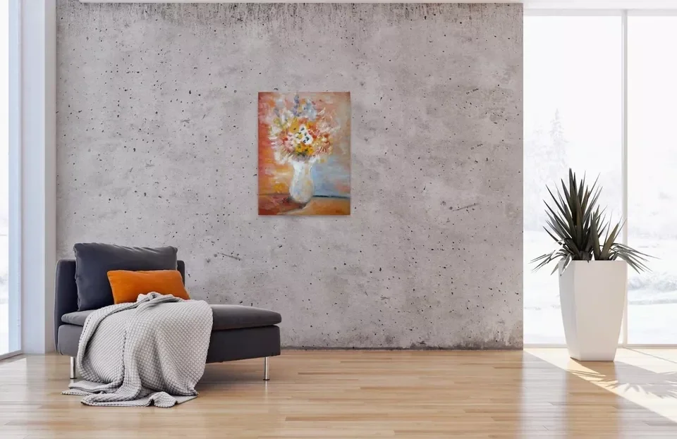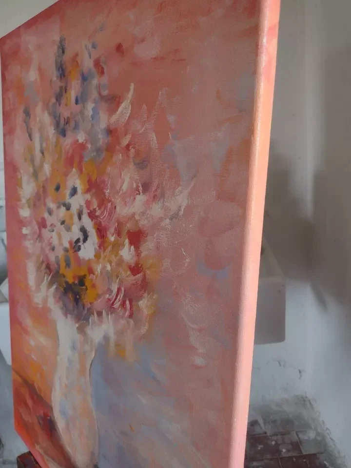 Quadro ad olio su tela. Vaso di fiori – espressionismo informale – quadro autentico certificato