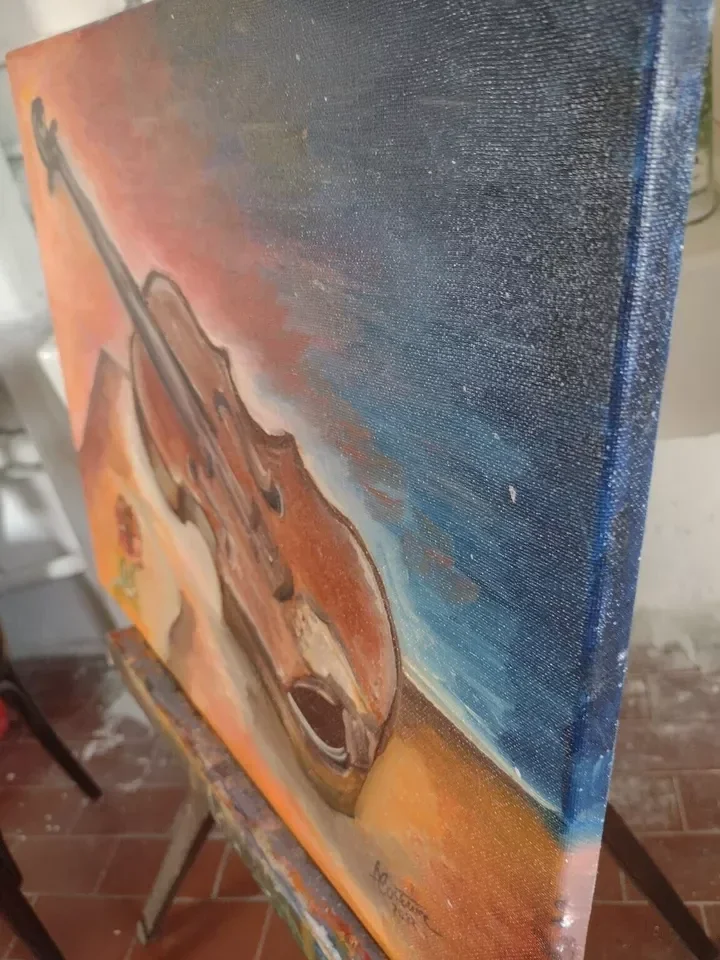Quadro ad olio su tela. Quella poesia davanti al violino – espressionismo – quadro certificato