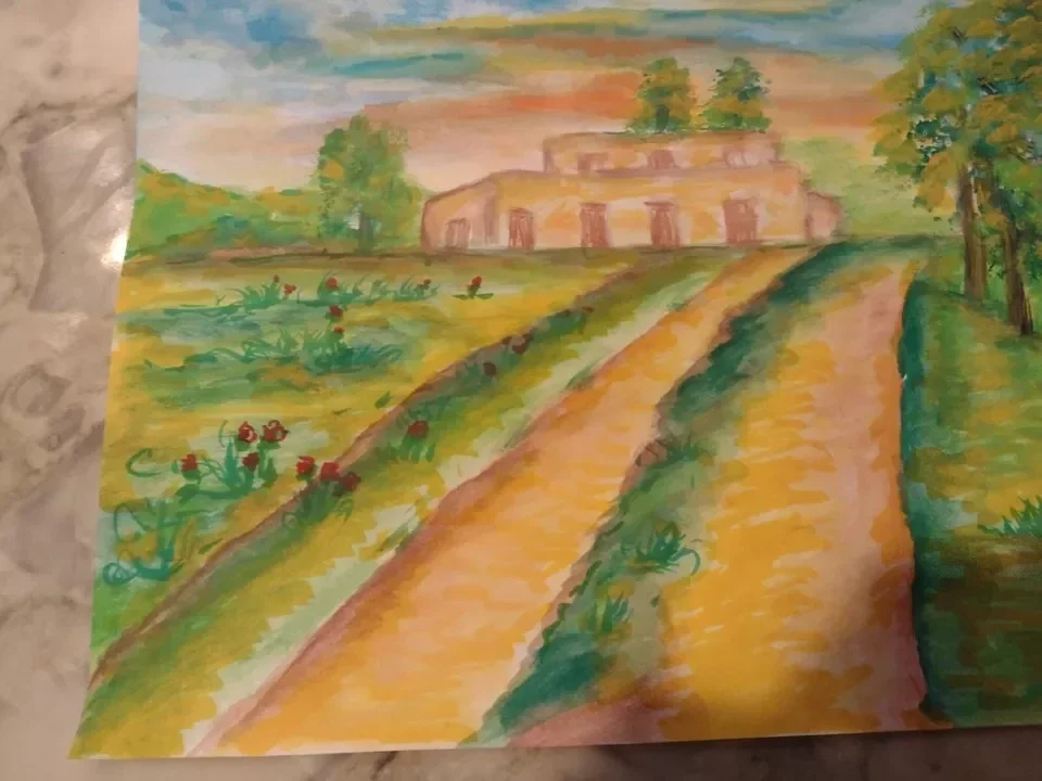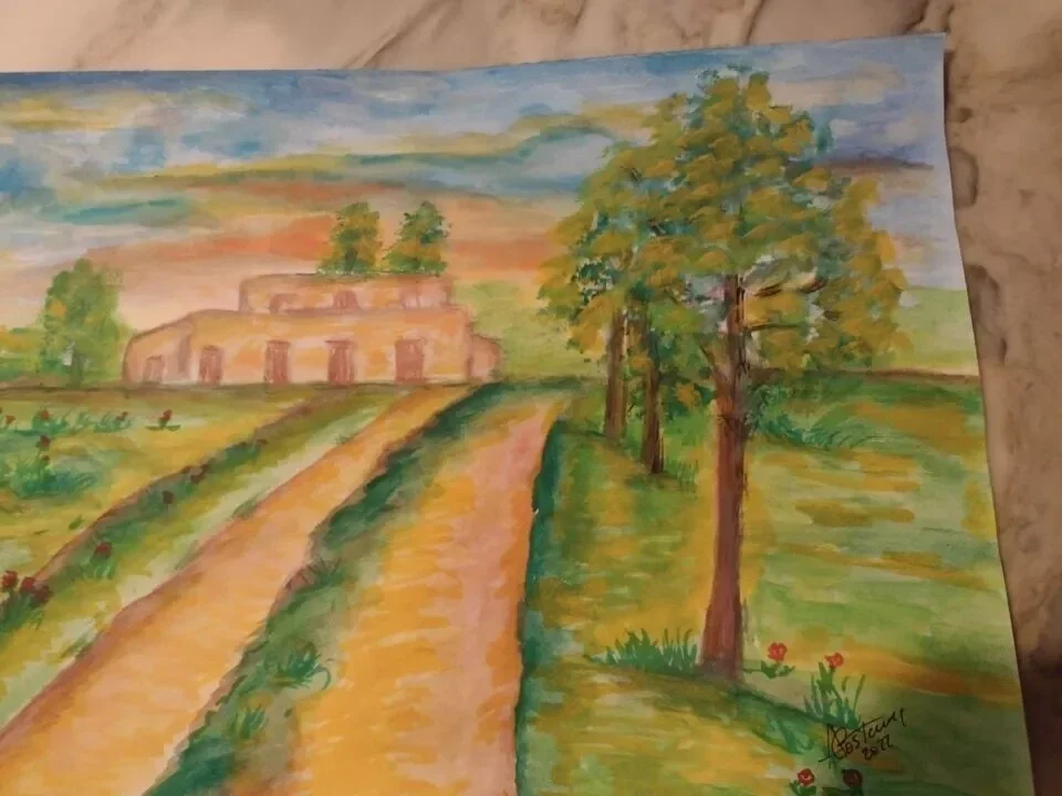 Dipinto ad acquerello – cascina di campagna – opera certificata autentica