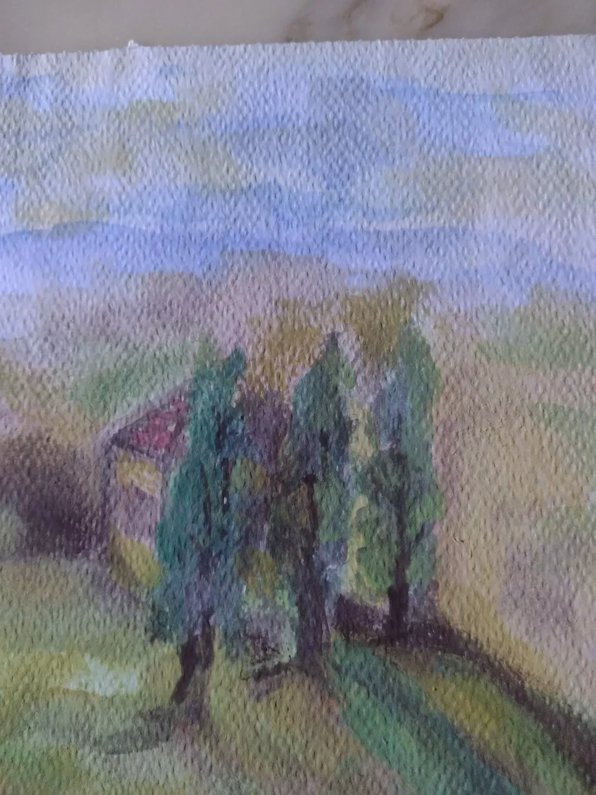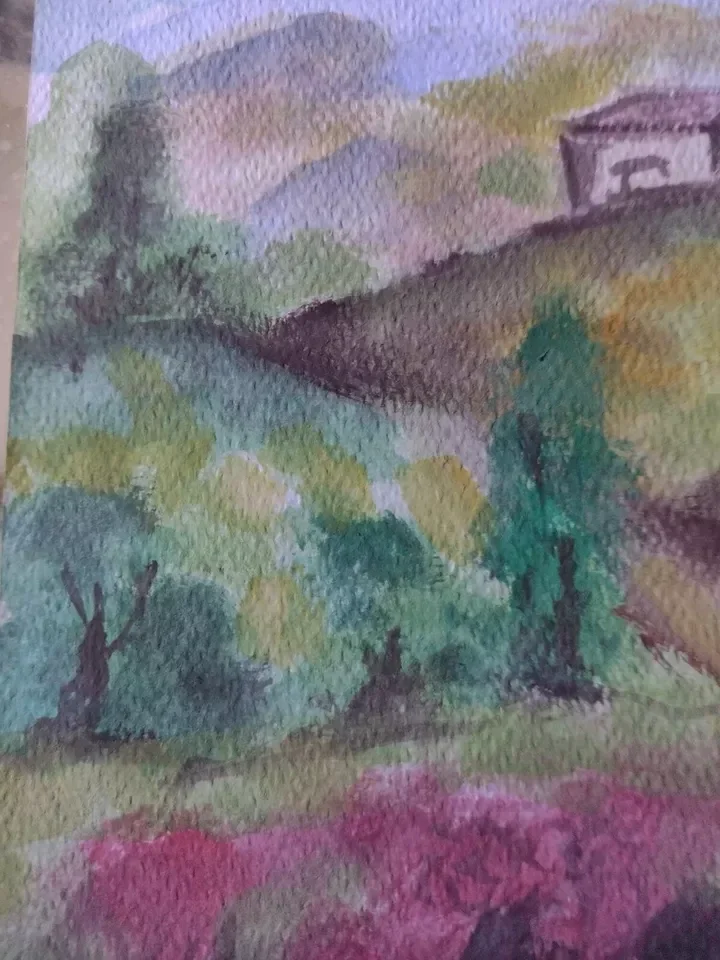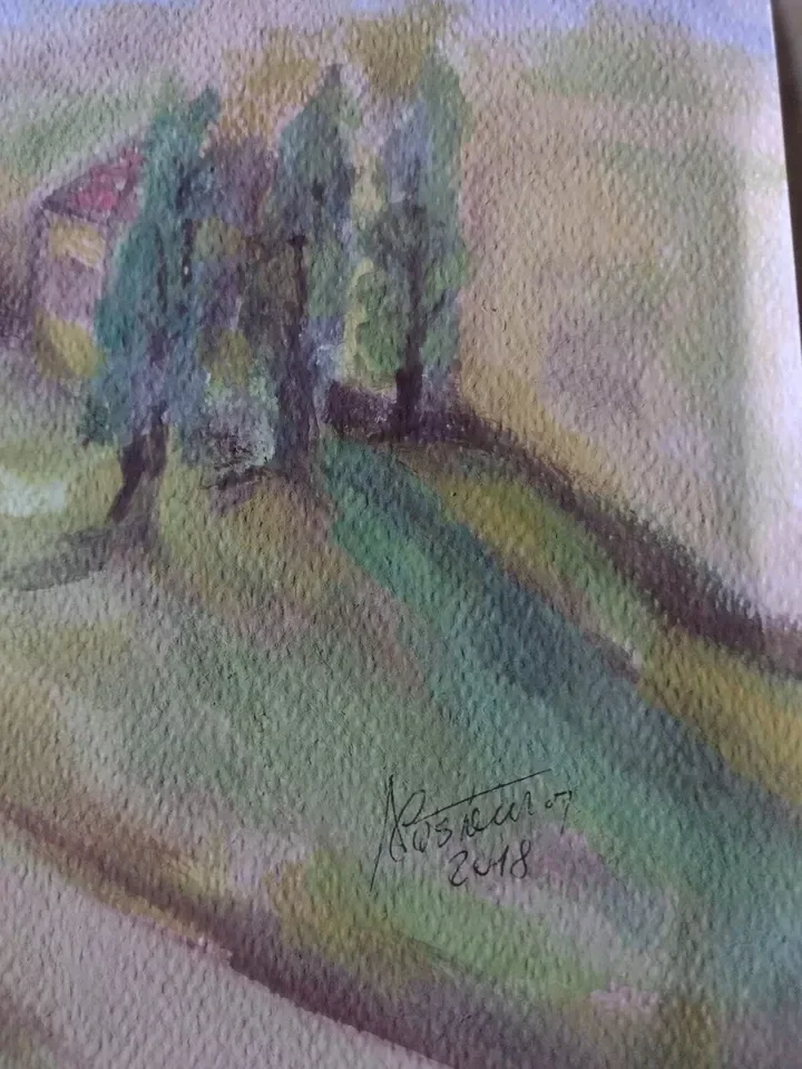 Dipinto ad acquerello. Paesaggio Toscano – opera con autentica