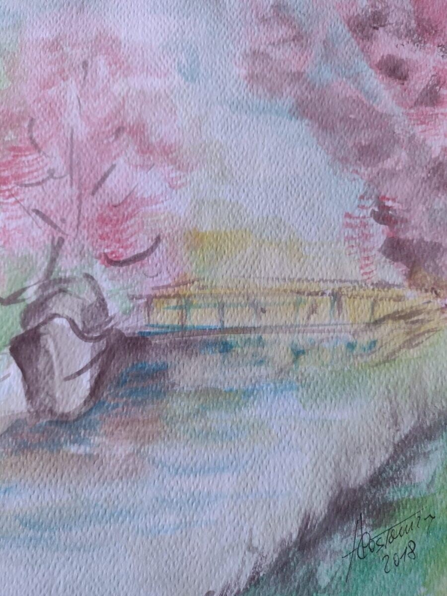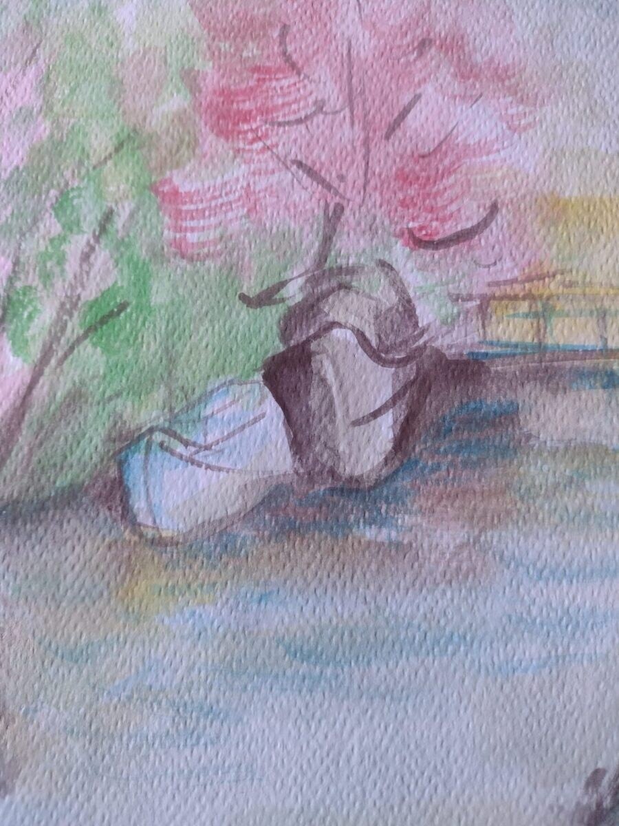 Dipinto ad acquerello. La barca in riva al fiume – opera con autentica