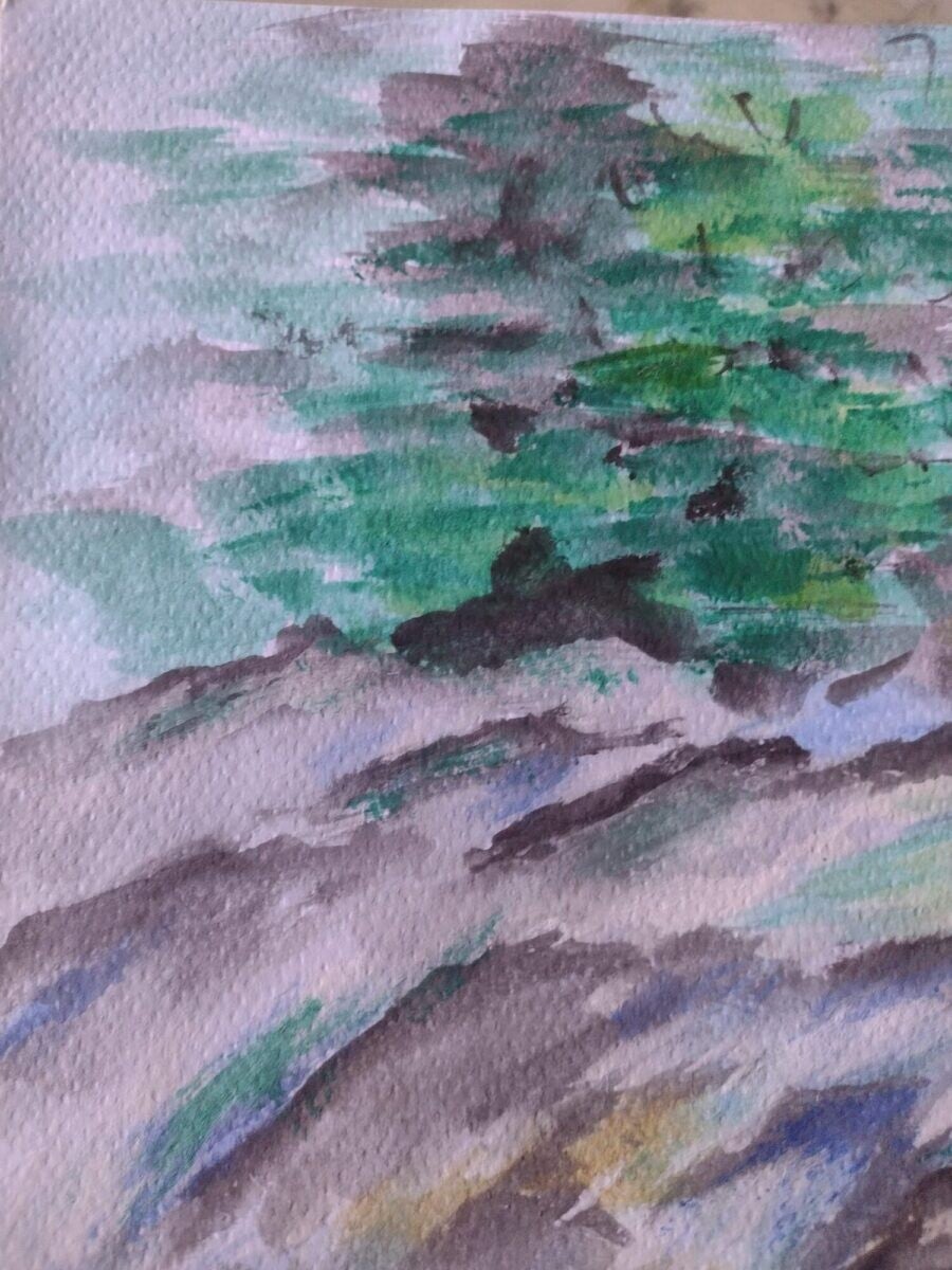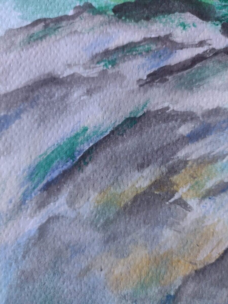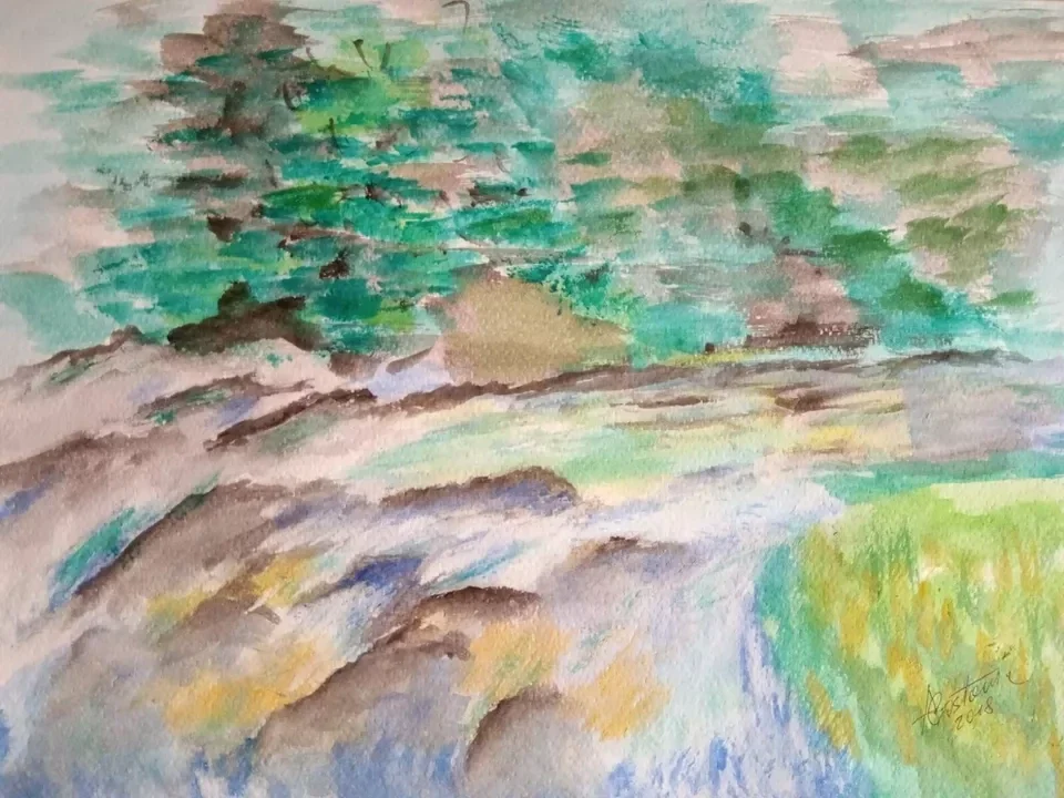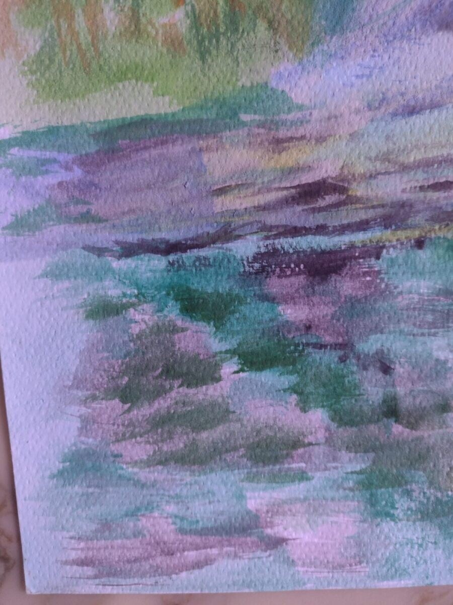 Dipinto ad acquerello. Cascate nel bosco – opera con autentica