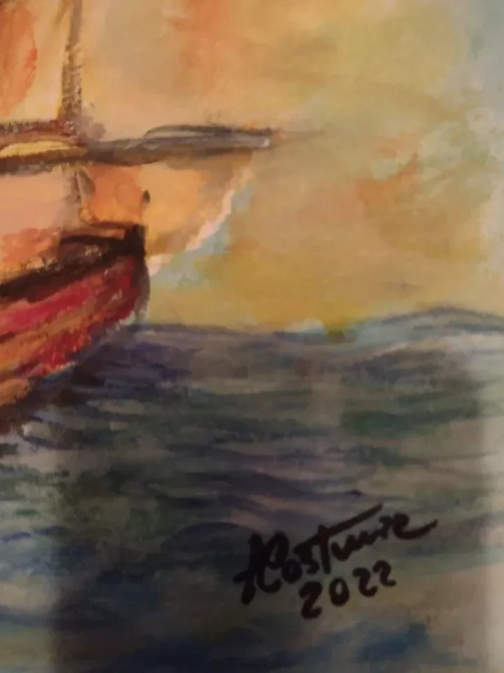 Dipinto ad acquerello. Piccolo veliero – opera con autentica